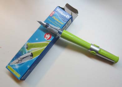 This week’s review is the Pelikan School Fountain Pen – fine point, right handed. Yes, it says so on the box . I’ve used Pelikan inks for a long time since the ink cartridges also work in Waterman fountain pens and many other pens that use the small cartridges – except they come in much larger cartridges.