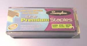This will be a slightly different review. Shoplet.com has a program that lets office supply bloggers/reviewers get supplies from them in exchange for reviews. I thought I’d try it out. They do have guidelines for their reviews, so bear with me – that’s where it will be a bit different. Last Wednesday (2/1), after an address kerfuffle, they sent me a Swingline SmartTouch Stapler and a box of Swingline S.F. 4 Premium Chisel Point Staples. For this post I’m combining the two products – because let’s face it, what’s a cool stapler without staples to go in it, right? Both of these products can be found on Shoplet.com.