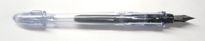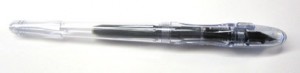 No, don’t blink. You’re not seeing double – much. The Pilot Penmanship Fountain Pen does indeed look very much like the >Pilot Plumix, but with some definitely differences – and it’s the pen I’ve been picking up the last couple of days, so it’s time. This is a pen I had on my JetPens wish list that my husband bought me for Christmas (yes, I’m that behind on some of the reviews). In fact, I kinda got two because the first one came in without a cap – just the clear body, nib, and ink cartridge. So he ended up with a second one. Now we have some spare parts.