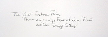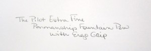 Oh, and being an extra fine nib, there is a bit more feathering of ink – especially on inexpensive paper, but I don’t find that to be significant. I do like the “scratchy” sound it makes while writing because it gives me a sense of accomplishment. Even with that sound, it’s still a smooth writing line with few skips, jumps or splatters. I do like the pen.