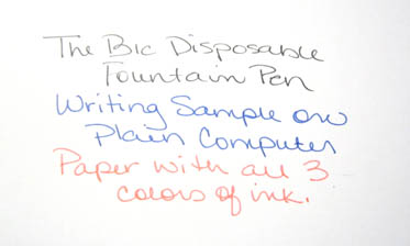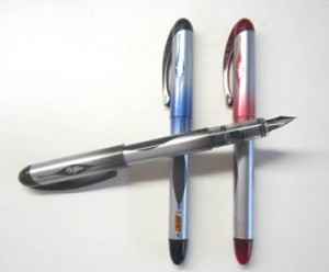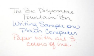 This week’s pen review comes on the heels of having a random fountain pen discussion with an artist at local art festival. He was also a “pen guy” and dug fountain pens. He’s never heard of the BIC disposable fountain pen – and since I have (had) about five – I gave him the one in my purse. Because I do really like this particular pen, and need to put another one in my purse.