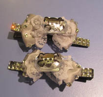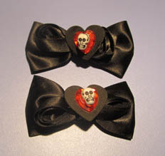Angela does make and sell some of the coolest Goth inspired hair accessories: barrettes, headbands, teacup hats, etc. She is located in Houston and sells via conventions, fairs, and even biker rallies. So you know her stuff is FUN. She also now has an Etsy Store – Pshycokitty Barrettes.