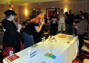 But people were met. Books were sold. Networking/connecting with creative partners occurred. Which is the business part of this convention going. If you don’t think being on a panel about making weapons out of office supplies doesn’t help garner you new readers…you’re wrong. Fans who get to shoot exploding spit wads at little plastic (zombified) army men remember the people who taught/let them do that. Fondly. They show that appreciation by buying books, art, and stuff.