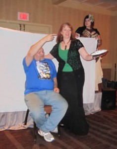 SoonerCon also has the BEST. Fundraiser. Ever. For their charity. They auction off whipped cream pies to the face for their ConChair and “ConFather”. I was in a consortium that won the bid on Jerry Wall, conchair, and since “group pieing” is illegal in 18 states (kidding), I was the designated “pie-er”. There is something cathartic, amazing, and downright giggly about smashing pie in someone’s face (now I know why it’s such a part of the physical humor repertoire).