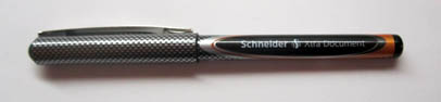 My favorite, local Office Depot is moving to another spot in its shopping center. In anticipation of this, they’re having Moving Sales. Which means I can buy random stuff to review for cheaper than I would normally–and makes me almost as happy as Back-to-School sales. One of the pens I bought to test out that I probably wouldn’t have otherwise, is this week’s review–the Schneider Xtra Document 0.6mm rollerball with black ink.