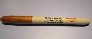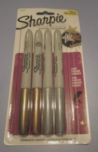 It’s no secret that I love Sharpies. I do. They have a major place in the writing world. The regular Sharpies are essential to autographing photos and labeling things permanently. I have one of the Stainless Steel Sharpie Pens that I do most of my book autographing with. But sometimes a basic black Sharpie won’t do—like if you have a dark background or paper. That’s where the metallics come in very handy.