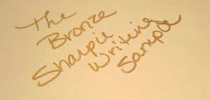 But now Sharpie is introducing a new metallic – Bronze. Yes, it’s the bronze age of Sharpies. I actually like this metallic color. It is, to my eye and opinion, brighter and richer than even the gold. Though I only did the writing sample on white paper, it seems like it should do really well on dark backgrounds as well. I also like it because it speaks to me as a Redhead…bronze is good.