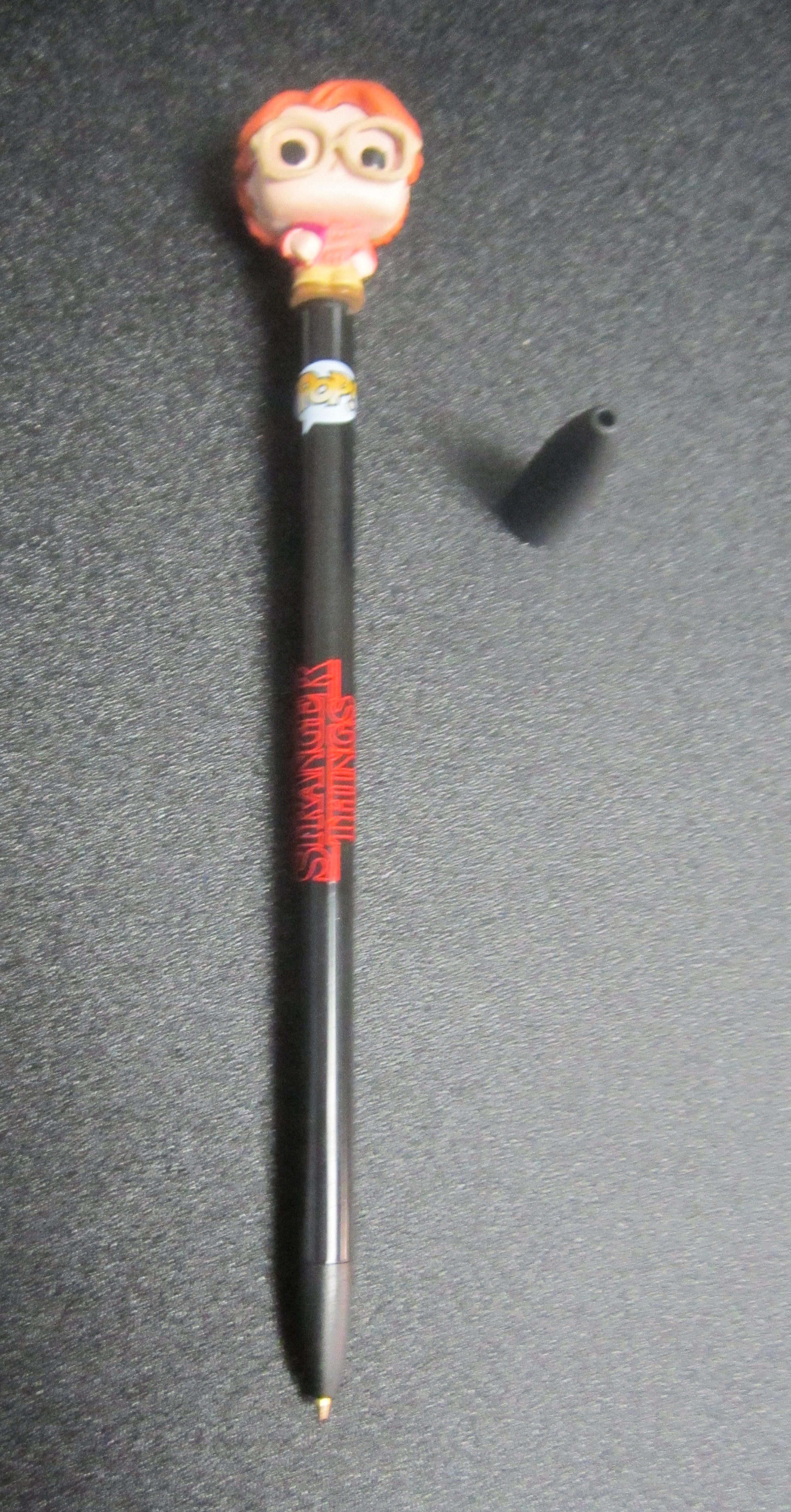 I don’t always go for the useful pens. Sometimes (especially when it comes to Christmas Stocking Stuffers or other random occasions) I go for pens that are just fun/silly/etc. Let’s face it, that’s most of the time. This one was an impulse holiday sale. Jimmy picked it up for me to put in the stocking because of all the feels. It’s a pen from Funko Pop! And it’s a tiny vinyl Barb from Stranger Things on a pen.