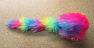 2. Grip and feel – 0.5 – It’s light and fluffy, better balanced than it should be – but there’s some quibbles. The pom pom makes it a teensy bit top heavy and the fluff is a ribbon, so there are some lumpies.