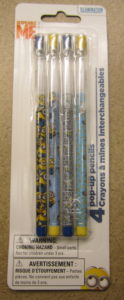 This is another Dollar Tree find that makes me happier than it should – and something I haven’t used since I was kid. The other attractive quality (besides price – $1) is the fact this is a four-pack of multi-point Minion pencils. The package came with four pencils with different Minon themes and colors.