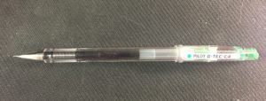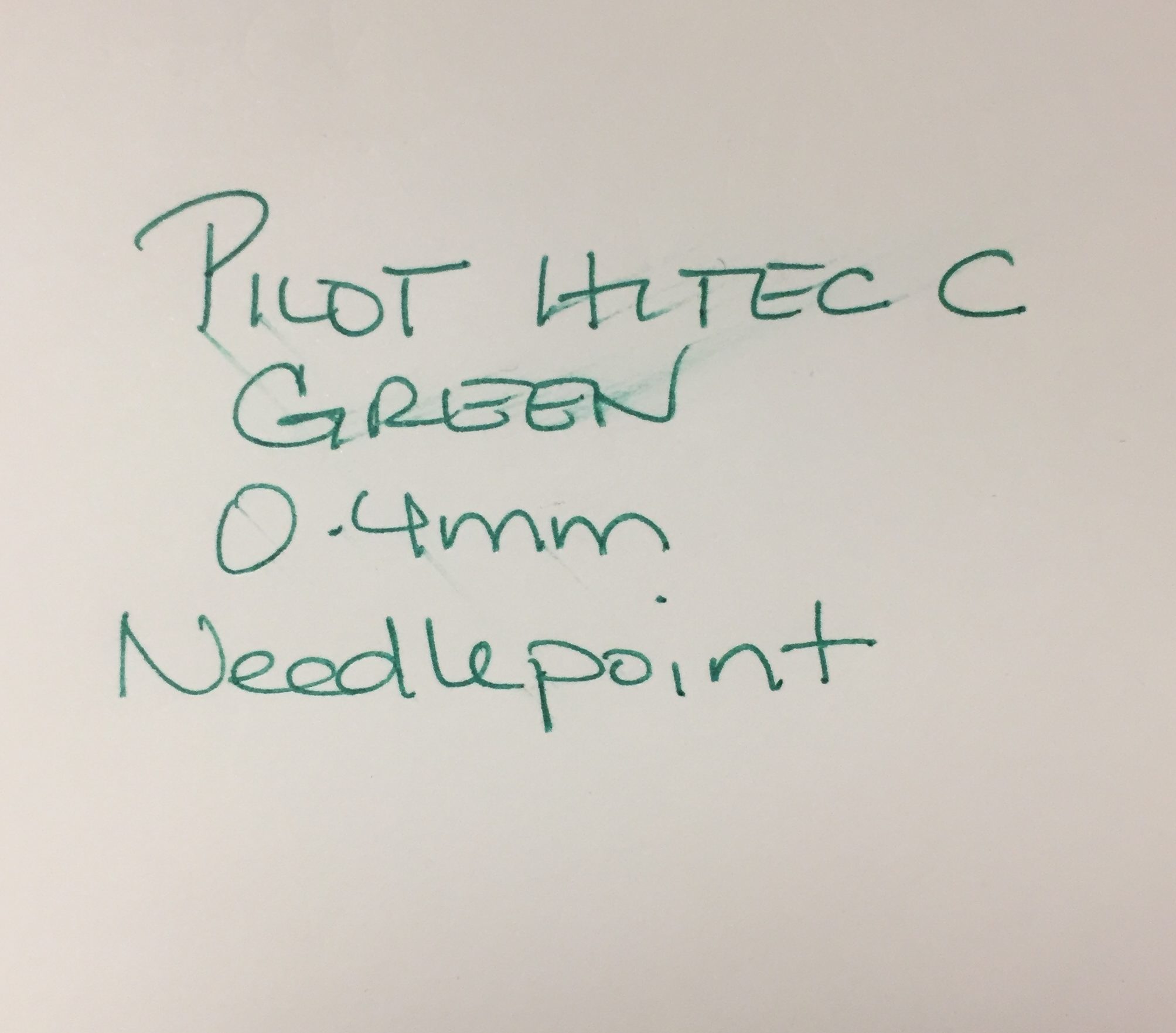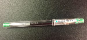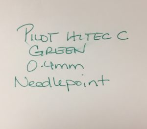 ‘Tis the Season to be totally behind – on everything. The pen blog is no exception. I’m constantly amazed by the pens I’ve managed to NOT review even though I’ve apparently had them a long time. I’ve done a couple of reviews on versions of the Pilot Hi-Tec-C. This is the 0.4mm green one – because holiday colors.