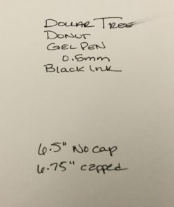 2. Grip and feel – 0.5 – It’s an inexpensive, plastic pen. The barrel is smooth. But it’s a bit top heavy with the donut.