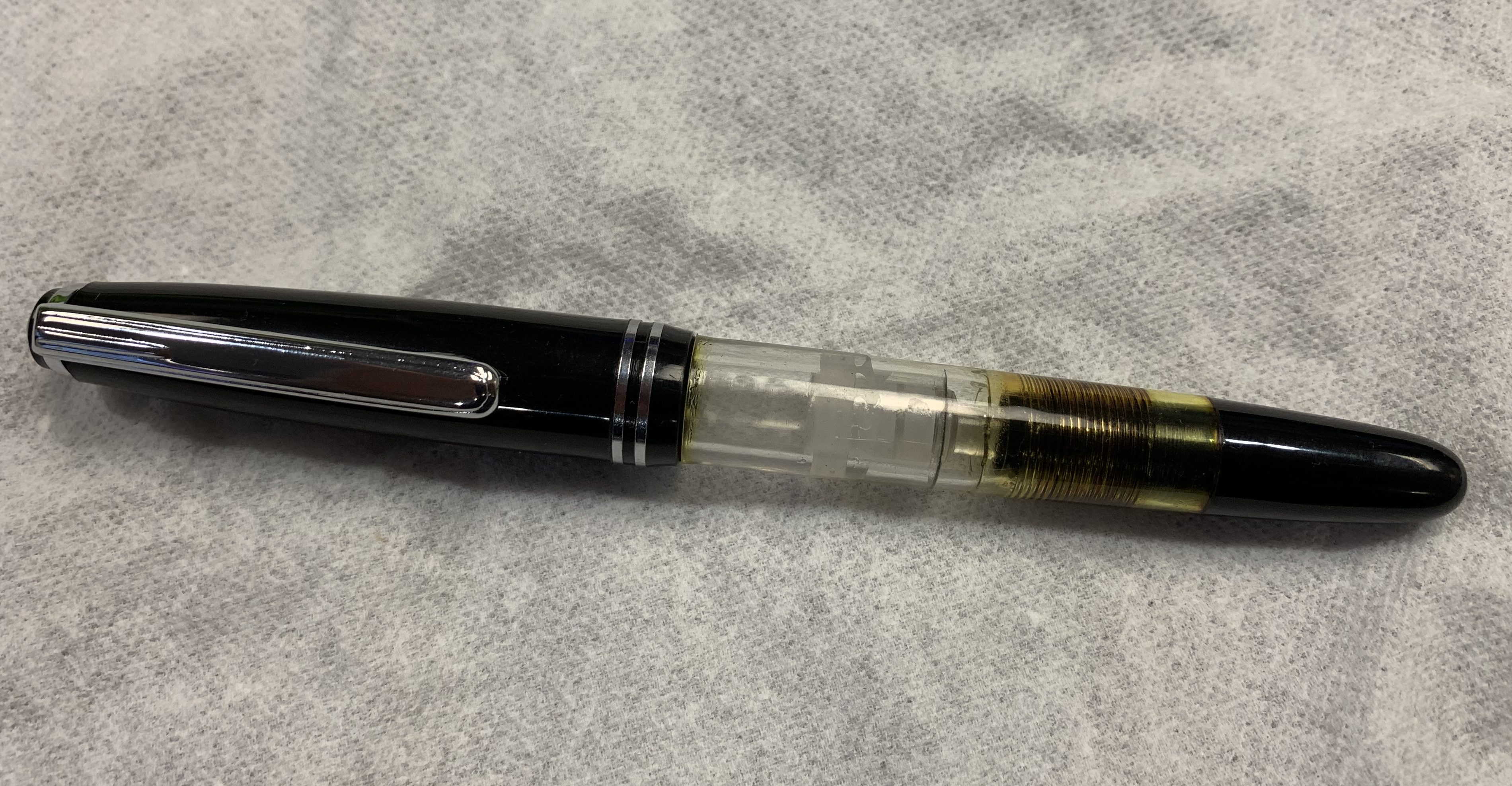 These came with a chose of nibs — of course, I picked fine point. They’re generic but functional with the twist vacuum reservoirs. I currently have the Tanzanite in the black and yellow. It works really well, so far.