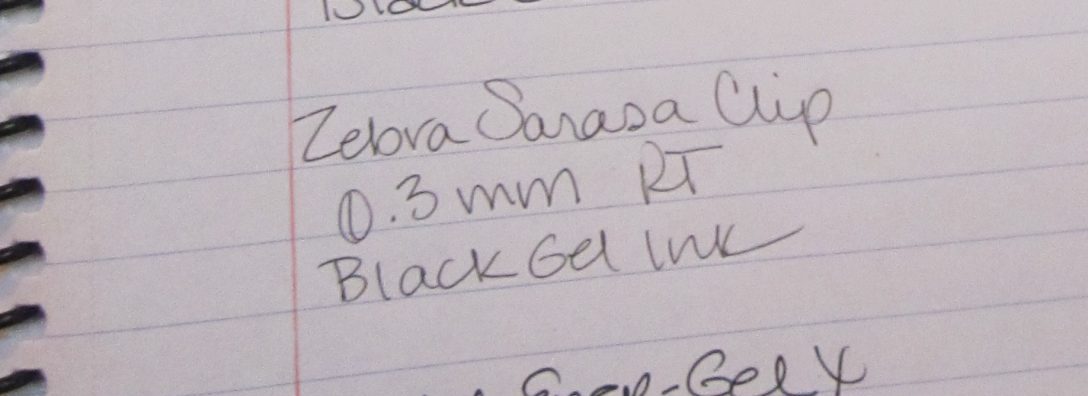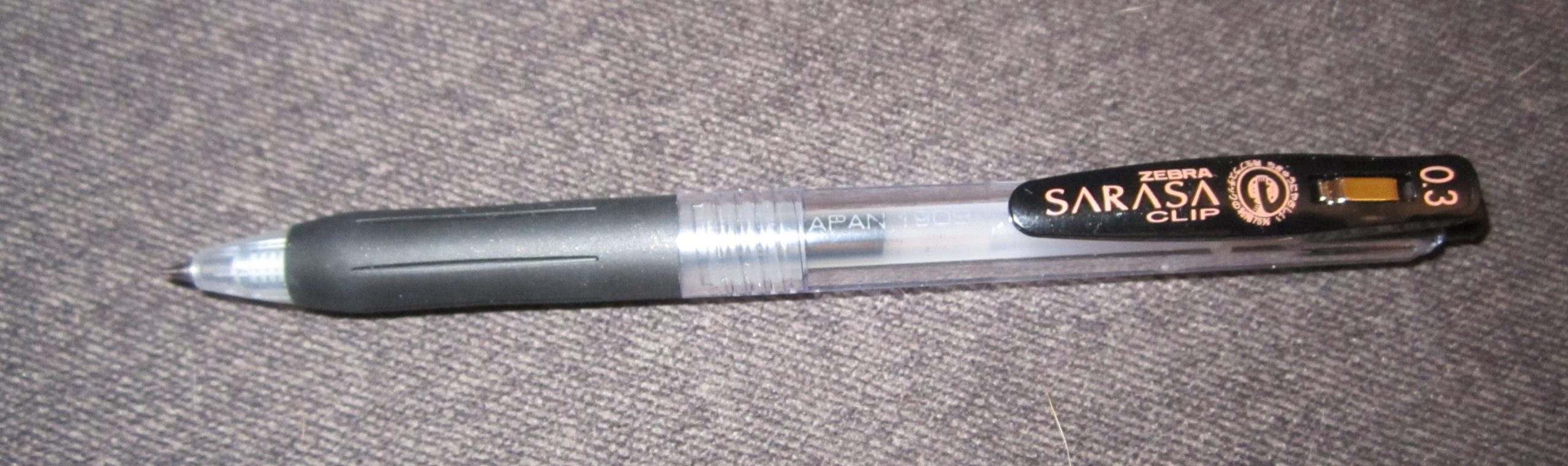 This week’s pen review is a basic, workhorse type pen with some fun little details. It’s the Zebra Sarasa Clip – in a 0.3mm point with black gel ink – because they’re good like that. This one came from the JetPens black gel pen sample pack Jimmy bought me for Christmas.